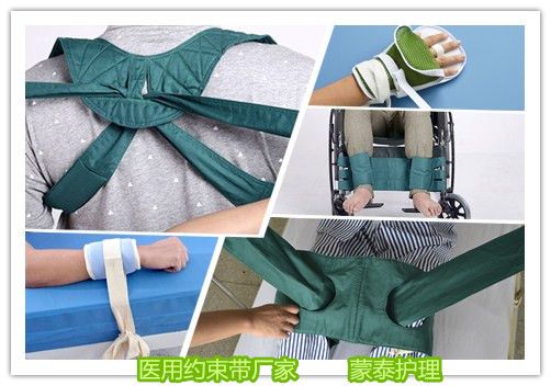 約束的工具包括帶鎖的輪椅既約束椅、床欄、約束椅、約束背心、約束衣、約束手套、肩部約束帶、腰腹部約束帶、磁控約束帶、床單等。據(jù)調(diào)查,傳統(tǒng)約束工具使用最多的是布制手腕約束帶,其次是加強(qiáng)型約束手套;身體約束以肢體約束為主,尤其是雙上肢的約束,其中腕部的約束最為普遍。身體約束不包括將設(shè)施或物品作為治療方法應(yīng)用,如:矯形、模型固定器、牽引器、靜脈注射的肢體固定板等。某些設(shè)施是否屬于約束工具要看用途,如拉起床欄是為了支撐呼吸機(jī)管道或協(xié)助患者翻身、坐起,這樣床欄就不屬于約束工具。