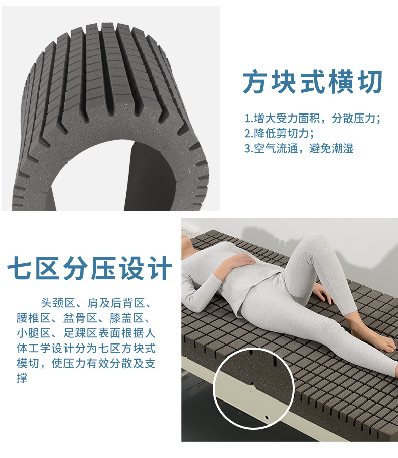 防壓瘡床墊由高彈力聚氨酯海綿組成,柔軟度好且回彈性強。