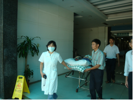 經(jīng)過科主任、護(hù)士長(zhǎng)同意,我送陳婆回家。10時(shí)谷涌醫(yī)院的救護(hù)車來到,陳婆的回家之路終于啟程了,科主任、護(hù)士長(zhǎng)、主管醫(yī)生也來送行。