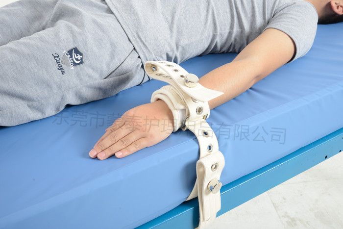 對于精神科躁動患者,或者有狂犬病、醉酒患者,因為他們不只興奮躁動還會有逃跑自傷等危險,建議約束帶和約束手套配合使用。