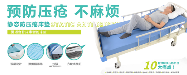 市面上大部分使用的是氣墊床多,它是較傳統(tǒng)的一種防壓瘡床墊,需要安裝、需要電源,平時(shí)用要小心,且后期維修較麻煩,不易于清洗消毒等,蒙泰靜態(tài)防壓瘡床墊,預(yù)防壓瘡效果好,不麻煩,裸床可用,不需要安裝,安靜、舒適、安全、防壓瘡效果好。
