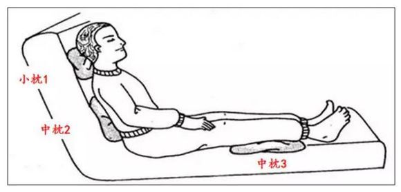 坐臥時(shí)如圖示使用頭枕,腰墊下肢抬高墊燈防壓瘡墊枕。