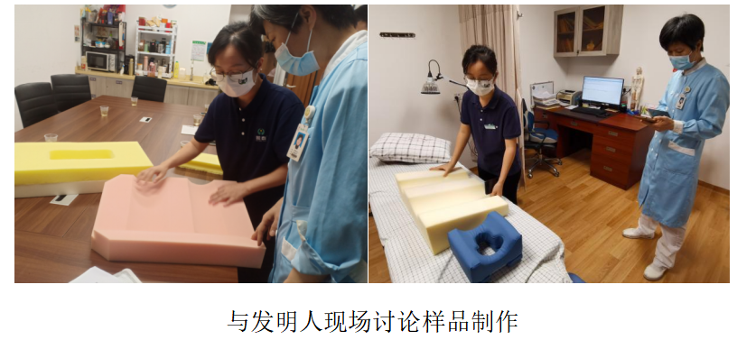 直到今年9月份,發(fā)明人對專利轉化成果“一種體位固定墊”樣品進行了確認。全程共進行了三次的升級改進,數(shù)次的打樣設計,才能符合臨床的需求。