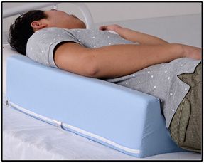 4、呈30度角側(cè)躺在床上,并用手來(lái)確認(rèn)骶骨是否離開(kāi)床面(如使用30度R型翻身枕)。