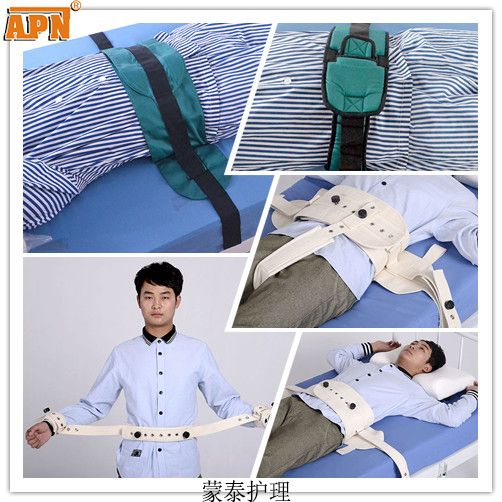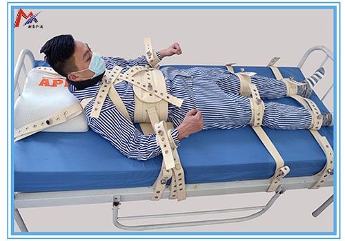 精神科約束帶作為一種必要的保護(hù)性約束用具在臨床經(jīng)常使用,也承擔(dān)著很重要的保護(hù)作用。在使用中有四肢約束的,有雙手約束的,有肩部約束的,直接約束手到床上居多的,也有兩個(gè)手拿著約束帶,然后互相反向一扭出一個(gè)圈的,也有四肢約束的,約束的方法很多,那么到底有多少種綁法呢?醫(yī)用約束帶生產(chǎn)廠家為您圖示: