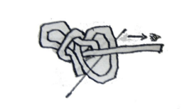 取布帶中間部位,將其折成兩個套(如圖),套在病人的手腕或踝部,再將兩邊長帶分別從套結(jié)中間下面穿過拉出,在上面打結(jié)之后,將余帶系于床欄上固定好。
