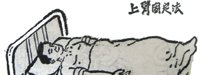 B. 上臂固定法 將大單折成寬帶狀,橫在病人身下,帶的上邊壓在腋下,將帶自纏繞上臂,從雙臂下方向外側(cè)方拉出,系于床緣邊上。如下圖: