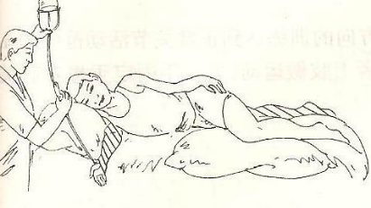 2、在患側(cè)肩關(guān)節(jié)以及上臂下方墊一長枕,以保持肩關(guān)節(jié)充分前伸、肘關(guān)節(jié)伸展和腕關(guān)節(jié)背伸。