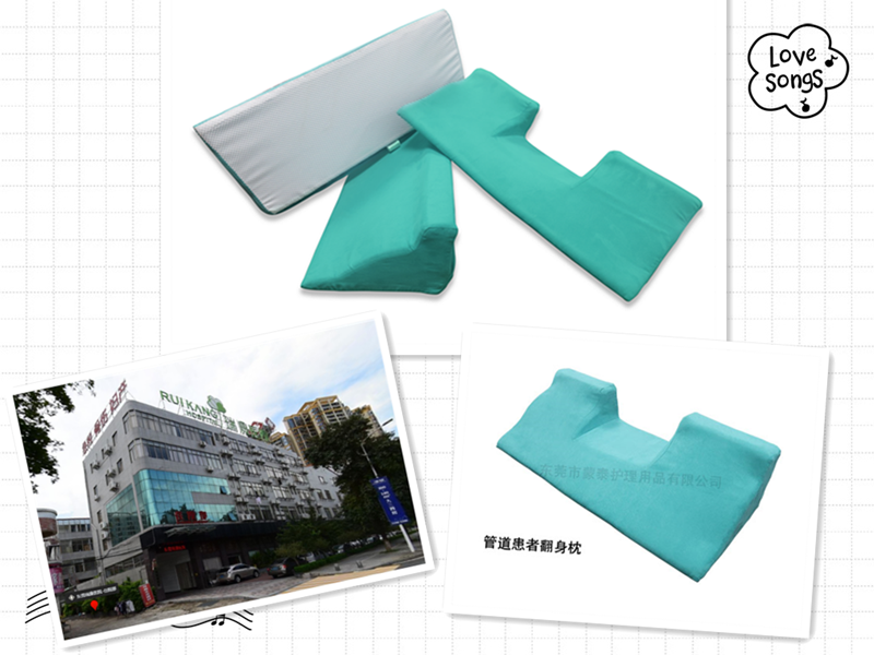 東莞蒙泰所研發(fā)生產(chǎn)有多種款式翻身墊如:R型翻身墊、底部防滑翻身墊、三角墊、管道患者用翻身墊等,其中的R型翻身墊是咨詢采購較多的一款。這款R型翻身墊是由高彈力海綿制成,不易壓扁變形等,R型翻身墊中的斜面與人體背部的外形相貼合,能夠增大背部的皮膚和翻身墊中的接觸面積,分散壓力。且能夠保持良好的體位,雖然有翻身墊的加入,能夠減輕護(hù)理人員的工作強(qiáng)度,但是它是不能夠代替翻身的作用,為患者勤翻身這個(gè)是不能少的!