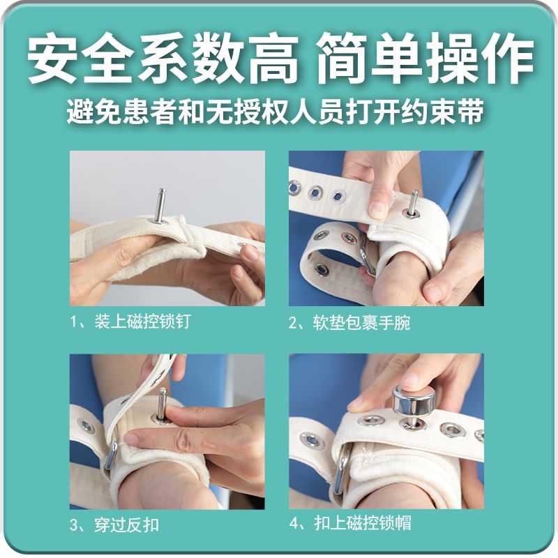 保護(hù)性約束是各大精衛(wèi)中心常用護(hù)理,對(duì)其緊急實(shí)施的一種強(qiáng)制性的,限制其行為活動(dòng)的保護(hù)措施,減少其他意外因素對(duì)患者的傷害,以保護(hù)患者自身及周圍人員的安全,同時(shí)暫時(shí)穩(wěn)定患者情緒,以防意外事情的發(fā)生,保證護(hù)理工作的順利進(jìn)行,而磁控約束帶則是保護(hù)性約束中的一種。