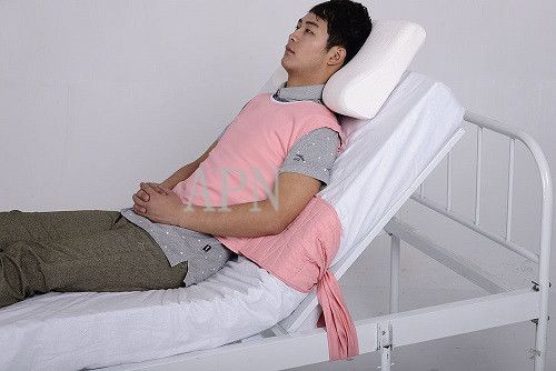 強(qiáng)抗拉力、前后兩穿的設(shè)計(jì)避免了躁動(dòng)患者自行解開掙脫的情況發(fā)生。受力部位加寬加厚、超長的腰帶可隨意調(diào)節(jié)松緊度,給予了自由翻身的空間,避免了血液循環(huán)障礙,使局部皮膚勒傷水腫。確保了患者安全。