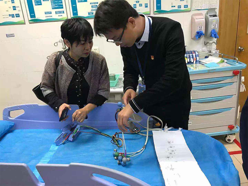 中山博愛醫(yī)院ICU鮑文博老師聞訊趕過來,他向陳仁英清晰講解了他的專利作品《一種心電圖機胸導(dǎo)聯(lián)電極的固定裝置》研發(fā)目的、材料要求及設(shè)計圖紙。因他在ICU經(jīng)常要做心電圖,但有的病人沒有皮下脂肪、汗多、緊張、躁動等多種原因?qū)е码姌O不能固定,常脫落而不能做心電檢查有可能導(dǎo)致延誤病情診斷。他希望蒙泰護理產(chǎn)學(xué)研平臺能幫他把樣品做出來,并能推向市場