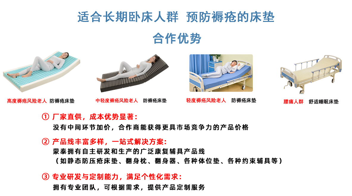 蒙泰靜態(tài)防壓瘡床墊在ICU中發(fā)揮著不可替代的作用,為患者的康復(fù)提供了堅(jiān)實(shí)的保障。蒙泰作為生產(chǎn)廠家將繼續(xù)致力于技術(shù)創(chuàng)新和服務(wù)提升,為更多的患者和醫(yī)院帶來(lái)更好的產(chǎn)品和服務(wù)。