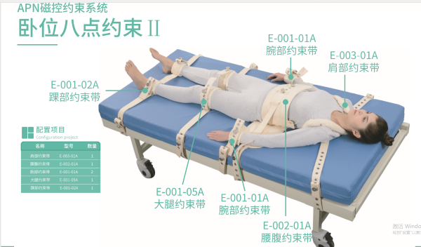 蒙泰約束帶,它以柔軟舒適、易清潔和保養(yǎng)的棉質(zhì)物縫制而成織帶;如果沒有授予權(quán)限或病人都打不開的磁控鎖裝置的設計;且根據(jù)人體工學而選擇不同尺寸棉織物制成,與人體接觸部位使用了羊羔絨軟墊,保護了病人的約束部位,減少約束部位的局部壓力和摩擦力和減少了皮膚的傷害,給病人一個安全的保護性約束而深得各位護理人員心里,且蒙泰約束帶具有美觀、大方的外表,讓約束者的被約束心理得以減少,而配合護理。