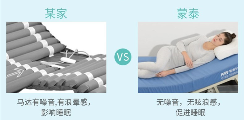 蒙泰靜態(tài)防壓瘡床墊與氣墊床相比具有以下優(yōu)勢:
