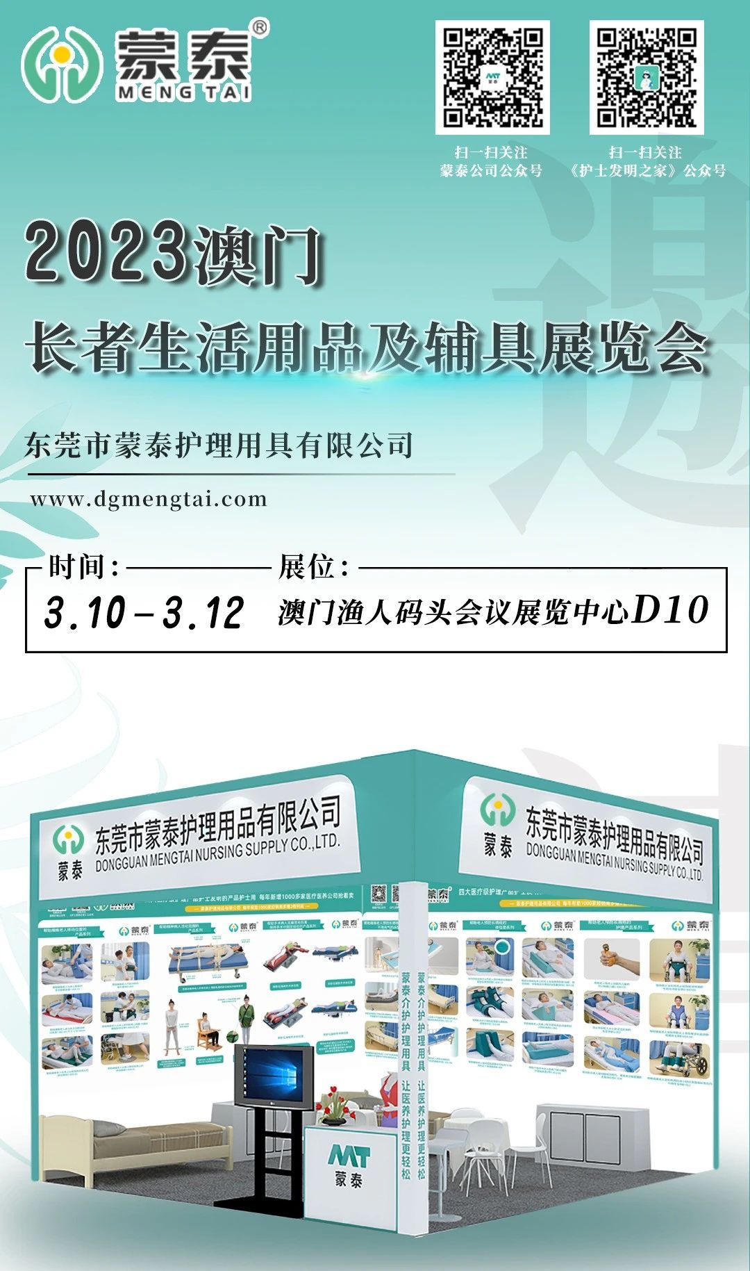 2023年蒙泰再次赴會“澳門長者生活用品及輔具展”,這次的展會將在3月10日在澳門漁人碼頭會議展覽中心開展。