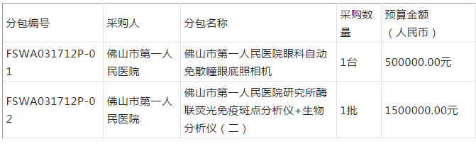 【2017年佛山市直醫(yī)療機(jī)構(gòu)第十二批醫(yī)療設(shè)備招標(biāo)公告】