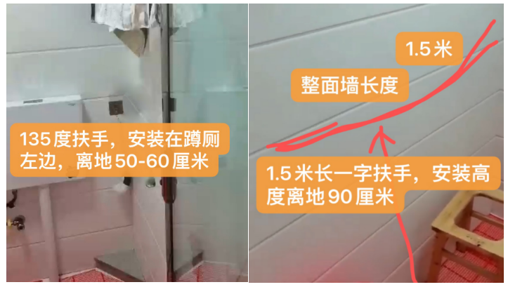 通過視頻通話,陳仁英了解到了羅總親戚家衛(wèi)生間的布局,然后根據(jù)實(shí)際情況給出了解決方案:2個(gè)扶手和1張防滑洗澡椅。