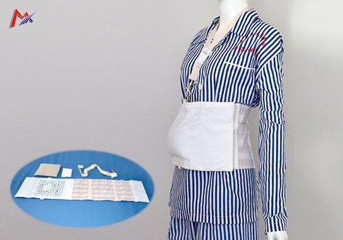 沙袋加壓腰腹帶由沙袋、紗布、掛鉤織帶、腰腹帶主體五部分組成。沙袋為1公斤裝,主要起到加壓的作用。紗布用于腹水液體滲液的吸收,防治污染袋體外露。掛鉤織帶固定加壓腰腹帶于患者的脖頸。加壓腰腹帶主體上面設(shè)有一個壓力點,起到幫助患者康復(fù),起到快速愈合的效果。