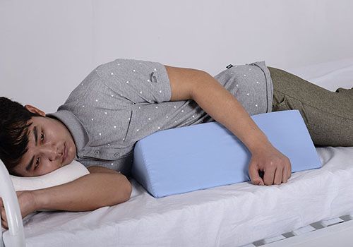 患者床墊要柔軟,床單平整,潔凈并勤更換;每2小時給患者翻身一次,避免拖拉;對經(jīng)常受壓部位勤按摩,也可在受壓部墊海綿墊,氣圈或軟枕等以減輕壓力。