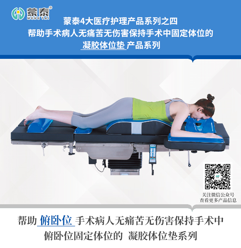 為滿足臨床的需求,蒙泰護理創(chuàng)始人、護士發(fā)明家陳仁英與臨床護理專家共同研發(fā)了凝膠手術體位墊。迄今,蒙泰已有十年的手術體位墊生產經驗,產品已經進入全國近千家醫(yī)院手術科室,率獲好評。凝膠體位墊柔軟度及支撐性能較為優(yōu)良,具抗壓減震性,可最大限度分散壓力,同人體組織有良好的相容性,能透過X線,絕緣不導電,易清洗,消毒方便,本身不支持細菌生長。