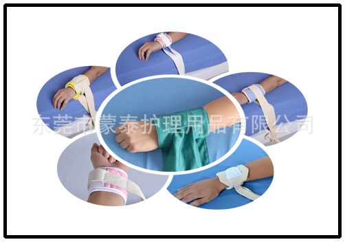 2、用棉墊包裹腕部(使用自帶軟墊的四肢約束帶,忽略此步驟。如東莞市蒙泰護(hù)理用品有限公司的四肢約束帶,任何一款都有內(nèi)置軟墊)。