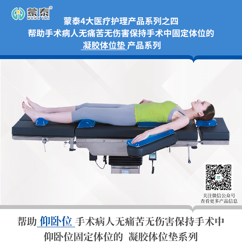因此,手術(shù)室需借助一些手術(shù)體位墊來滿足這些需求。為了滿足臨床需求,蒙泰護理推出了兩種材質(zhì)的手術(shù)體位墊:
