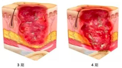 皮膚全層缺損,潰瘍面可呈現(xiàn)皮下脂肪組織和肉芽組織傷口邊緣卷邊(上皮內(nèi)卷)現(xiàn)象;可能存在腐肉和(或)焦痂;深度按解剖位置而異:皮下脂肪較多的部位可能呈現(xiàn)較深的創(chuàng)面,在無皮下脂肪組織的部位(包括鼻梁、耳廓、枕部和踝部)則呈現(xiàn)為表淺的創(chuàng)面;潛行和竇道也可能存在;但不暴露筋膜、肌肉、肌腱、韌帶、軟骨和骨。