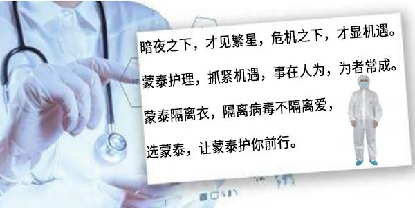 蒙泰護(hù)理致力于有溫度的護(hù)理用品的研發(fā)生產(chǎn),旨在讓患者更輕松,讓醫(yī)護(hù)更輕松的護(hù)理用品。疫情的發(fā)生雖打亂了蒙泰護(hù)理2020年發(fā)展規(guī)劃,但挑戰(zhàn)伴隨機(jī)遇,“陽(yáng)和啟蟄,品物皆春”,蒙泰護(hù)理相信在億萬華夏兒女的共同努力下,疫情很快會(huì)結(jié)束,蒙泰護(hù)理腳踏實(shí)地,堅(jiān)定自己的路,不負(fù)韶華,不負(fù)春秋,愿為醫(yī)護(hù)人員研究生產(chǎn)更多有溫度的護(hù)理用具。