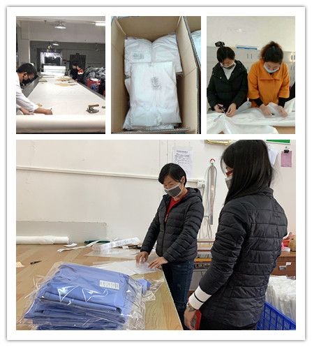 蒙泰護(hù)理原本是生產(chǎn)醫(yī)用護(hù)理用品的生產(chǎn)廠家,為了助力疫情防控,蒙泰陳總想方設(shè)法申辦資質(zhì),調(diào)集全公司力量和資源,研發(fā)生產(chǎn)醫(yī)用隔離衣,為國(guó)分憂,但是除了本地的工廠員工及時(shí)返工外,其他外地員工紛紛被滯留當(dāng)?shù)責(zé)o法返莞,為了讓有需要的人員盡早用上隔離衣,營(yíng)銷部全員,甚至企業(yè)管理人員紛紛走進(jìn)車間參與隔離衣生產(chǎn),生產(chǎn)車間里到處是員工們忙碌的身影,剪裁、縫制、剪線頭、質(zhì)檢、貼商標(biāo)、包裝、再檢驗(yàn),清點(diǎn)、裝箱,一個(gè)工序也不能少。