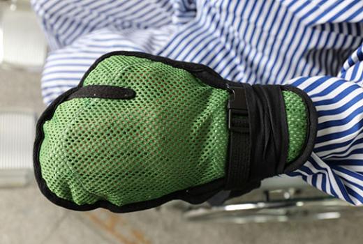使用前應(yīng)向病人或家屬做好充分的解釋工作,取得他們的理解和配合,并在護(hù)理記錄單上詳細(xì)記錄使用約束帶的原因、部位、病人的皮膚情況。并嚴(yán)格做好床頭交接班。在使用過(guò)程中應(yīng)經(jīng)常檢查放在約束手套內(nèi)的雙手是否脫出,約束手套有無(wú)移位,松緊度是否適宜等。一般1~2h放松1次,每次10MIN左右。翻身時(shí)需先松開(kāi)約束手套的帶子。病人如無(wú)明細(xì)躁動(dòng),在不影響治療、護(hù)理、安全的情況下可盡量放松約束手套的帶子,但不必脫掉手套。