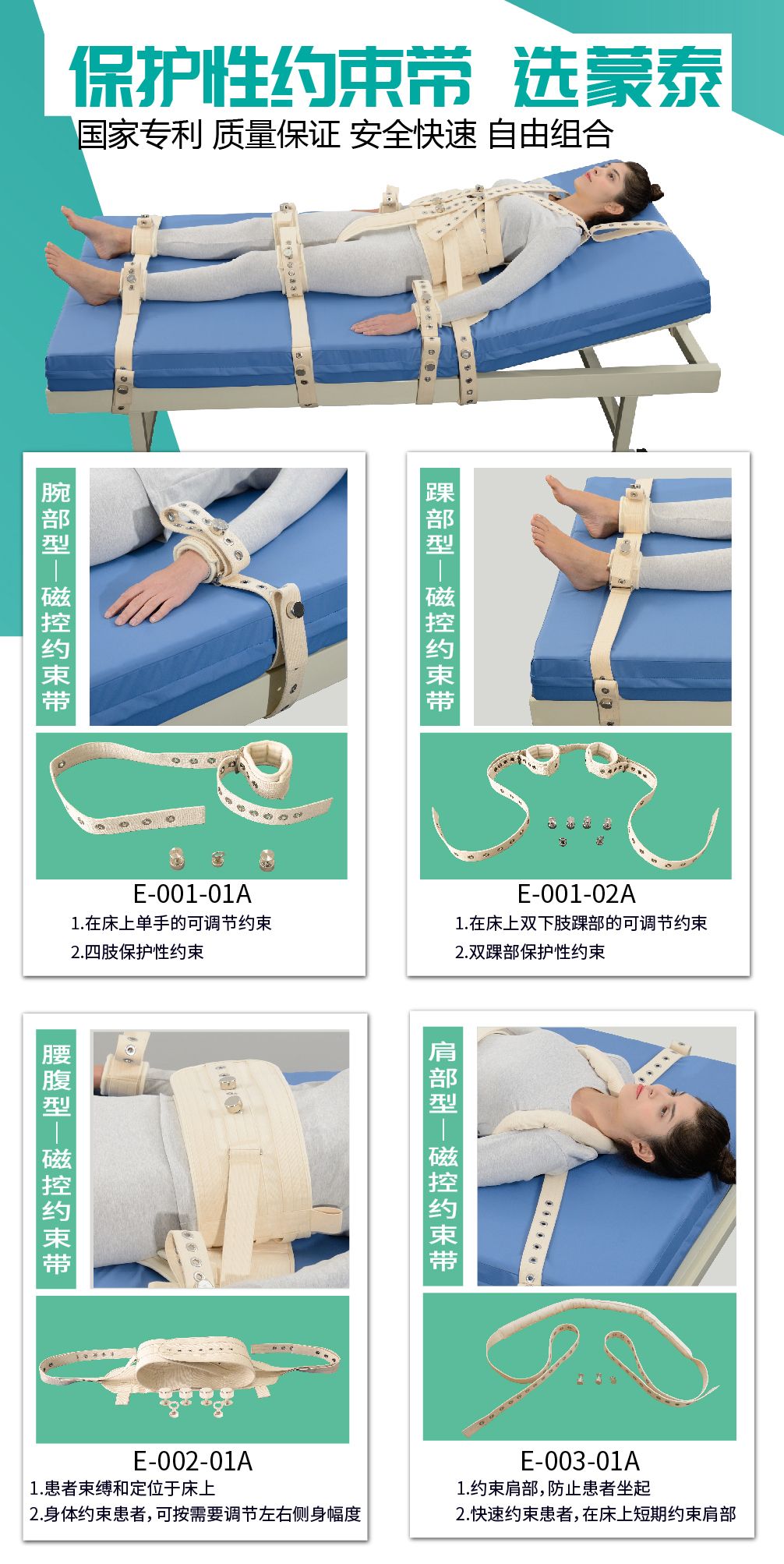 蒙泰護(hù)理作為一家專門做護(hù)理用品的廠家,就單單一個約束帶系列,就有著很多種款式,那么在哪里可以看到蒙泰護(hù)理所生產(chǎn)的約束帶系列產(chǎn)品呢?那就歡迎大家來到蒙泰的產(chǎn)品形象展示廳吧!在這里,你可以看到蒙泰所生產(chǎn)的產(chǎn)品,如:磁控型、四肢型、腰腹型、膝關(guān)節(jié)型等,除此之外,蒙泰在2020年新推出的插入式磁控約束帶在這里你都可以看到,那么展示廳里面的所有產(chǎn)品是只能看的嗎?那肯定是“不”,蒙泰展示廳里面的約束帶,都可以觸摸、嘗試、購買的,如果你沒時間來看,那也沒問題,只要是你對約束帶感興趣的,都可以咨詢蒙泰護(hù)理,蒙泰護(hù)理除了展廳展示外,在各大平臺都有身影,或者我們?yōu)槟l(fā)送詳細(xì)的約束帶資料供您查看的哦!