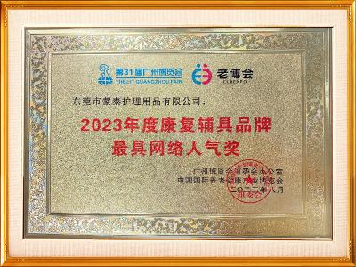 年度康復輔具品牌最具網(wǎng)絡人氣獎