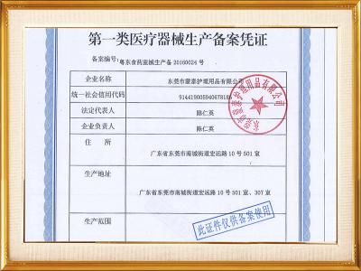 一類醫(yī)療器械生產(chǎn)備案證 -