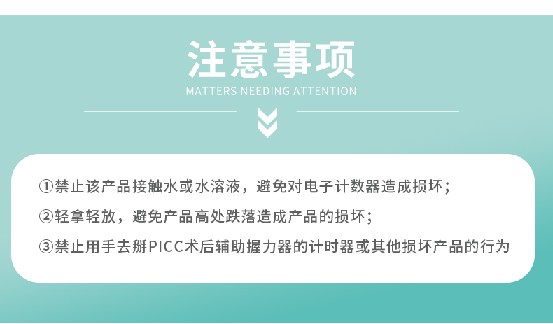 禁止用手去掰PICC術(shù)后輔助握力器的計時器或其他損壞產(chǎn)品的行為。