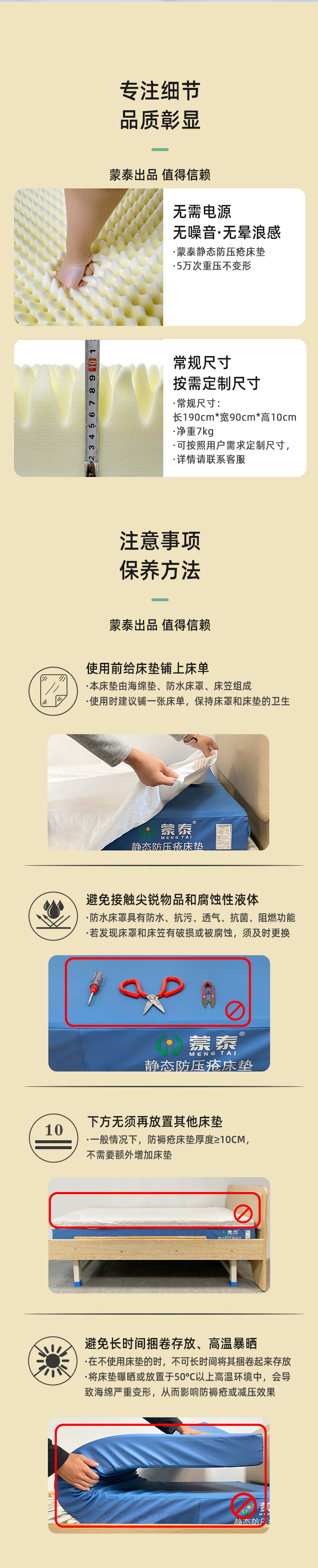 幫助輕度壓瘡風(fēng)險者或手腳能動但沒有力氣獨(dú)自下床活動的長者預(yù)防長褥瘡的靜態(tài)防褥瘡床墊