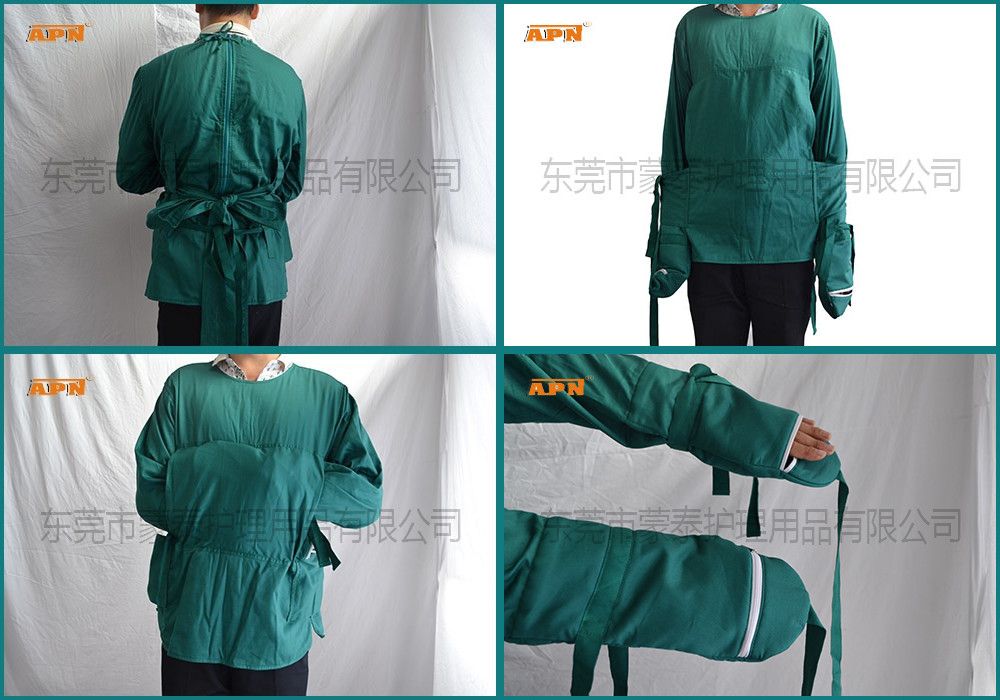 產(chǎn)品特點(diǎn):雙層加厚棉質(zhì)布料,后背拉鏈便于穿脫,手部拉鏈設(shè)計(jì)便于觀察手部情況,將患者雙上肢固定胸前后自然下垂體位。腰部長(zhǎng)