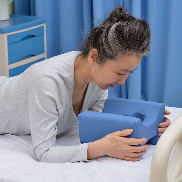 【產(chǎn)品特點】:讓用者俯臥位時臉朝下,頸部保持稍后仰中立位,有透氣窗,使用呼吸順暢,面料親膚,無異樣感、防水透氣,內(nèi)墊柔軟度適宜,可支撐頭部重量不變形