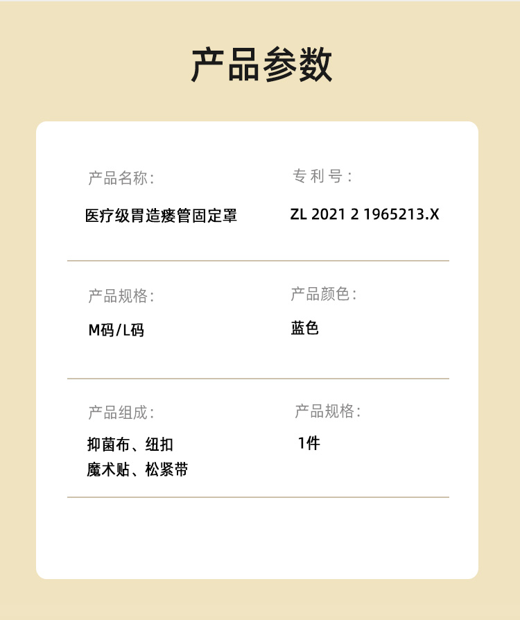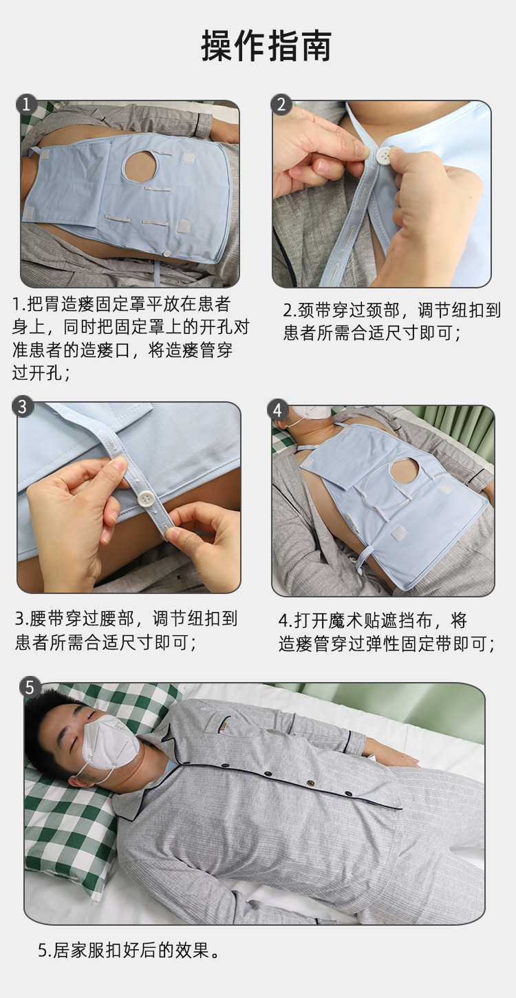布料為親膚柔軟、抑菌材質(zhì),不易滋生細菌,降低胃造瘺管傷口感染風(fēng)險。