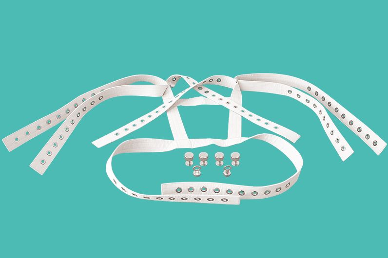 組成 腰腹表帶、集成側(cè)定位帶、檔帶、四個鎖扣、四個鎖釘、兩個磁性鑰匙。