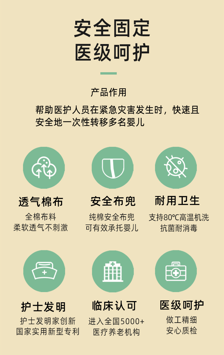 嬰兒應(yīng)急救援服 幫助醫(yī)護(hù)人員在緊急災(zāi)害發(fā)生時(shí),快速且安全地一次性轉(zhuǎn)移多名嬰兒