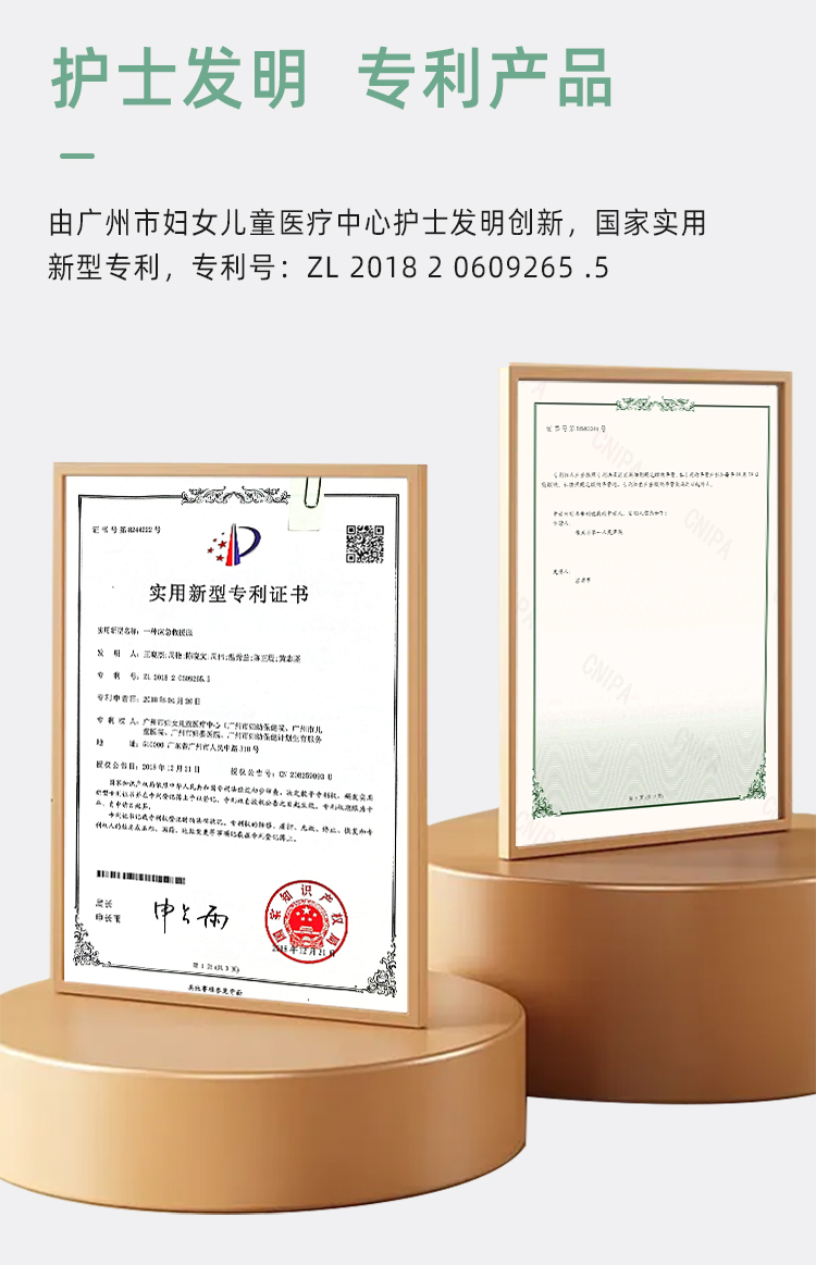 由廣州市婦女兒童醫(yī)療中心護(hù)士發(fā)明創(chuàng)新,國(guó)家實(shí)用新型專利,專利號(hào):ZL 2018 2 0609265 .5。